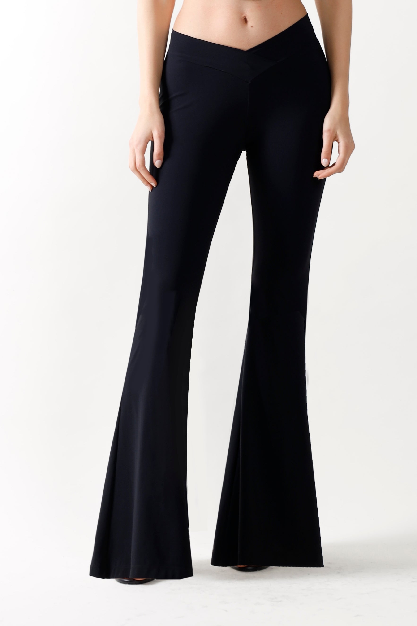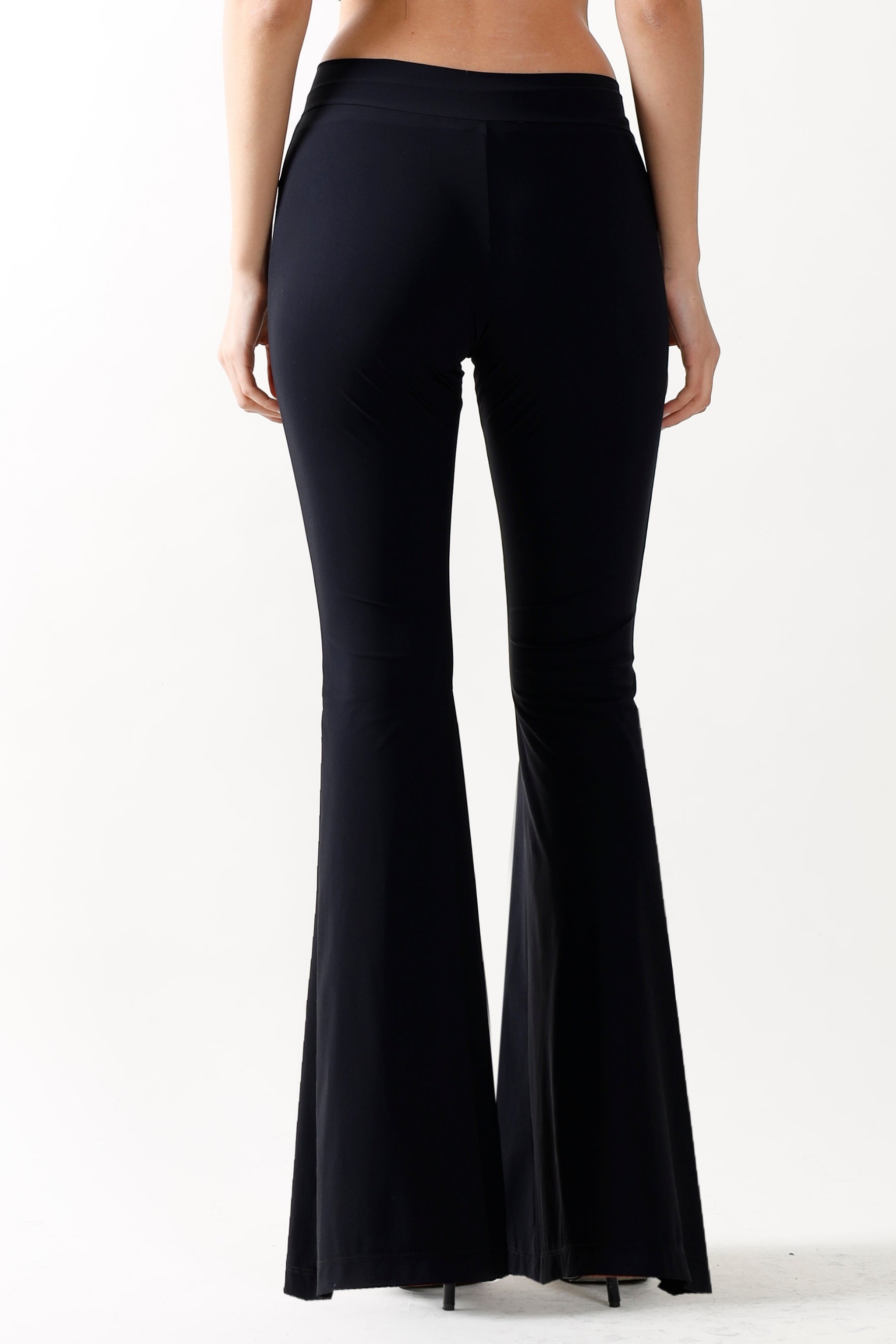 Enhance your wardrobe with our Flared Black Pants, expertly crafted for comfort and style. These mid-rise pants boast a flattering flared silhouette that elongates your legs, making them ideal for any event. Made from premium fabric, that shapes and smooths and an impeccable fit, ensuring you look stylish and feel self-assured. Easily pair them with your favorite tops for a versatile outfit that transitions smoothly from day to night.