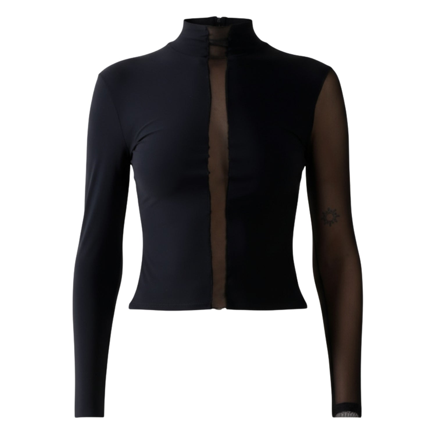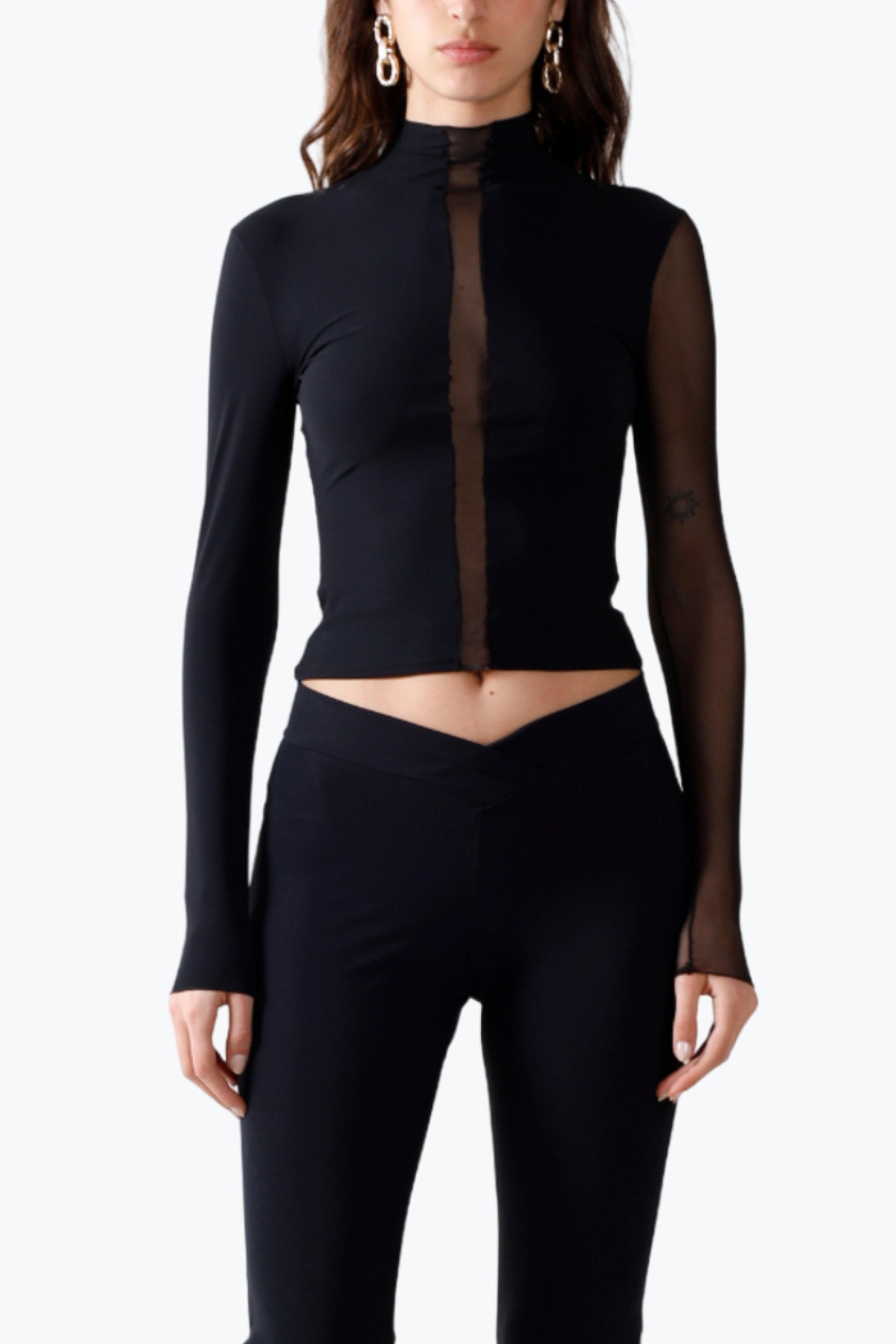 Elevate your wardrobe with our stylish black turtleneck top, featuring long sleeves and a chic mesh cut-out design. This versatile piece effortlessly combines comfort and sophistication, making it perfect for both casual outings and more polished events. Pair it with your favorite jeans or black slacks for a trendy look that showcases your unique style.