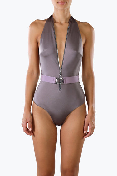 The chic Zelda One-Piece Swimsuit, designed to elevate your poolside elegance. This stunning piece features a gold centre zipper with a elastic belt with a statement embellishment, adding a touch of sophistication. The low-cut back and medium coverage bottom offer both style and comfort, making it the perfect swimsuit to wear on its own or paired with a cover-up for a versatile summer look.