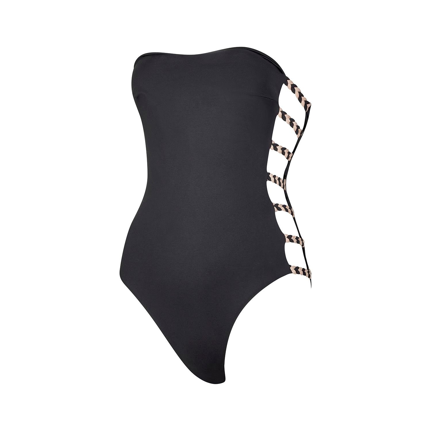 The Zoya One Piece shows that simplicity is sexy. Strapless with a silhouette shape it features stunning cut out details on the sides and back to flatter your figure and a medium coverage bottom.